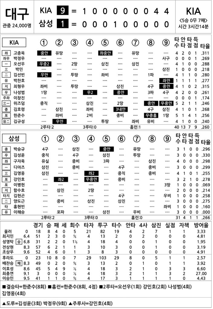 [2025 KBO리그 기록실] KIA vs 삼성 (8월 13일) 댓글 달기 / 스포츠 뉴스 / totomon 글 내용 [2025 KBO리그 기록실] KIA vs 삼성 (8월 13일) 더 읽기"