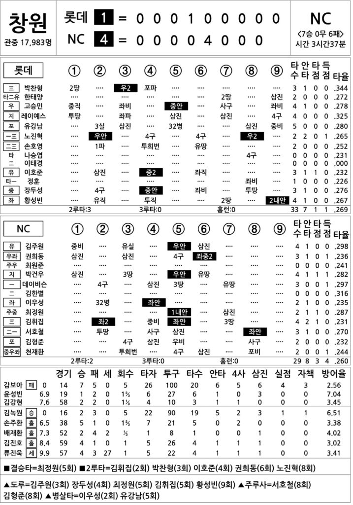 [2025 KBO리그 기록실] 롯데 vs NC (8월 23일) 댓글 달기 / 스포츠 뉴스 / totomon 글 내용 [2025 KBO리그 기록실] 롯데 vs NC (8월 23일) 더 읽기"